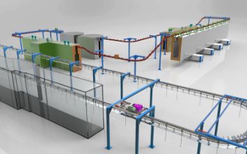 Автоматизированный комплекс нанесения порошковых покрытий, дает бесспорное преимущество в скорости выполнения работ, высвобождает людские ресурсы, увеличивает производительность и качество выпускаемой продукции. Автоматическая линия порошковой окраски состоит из разных составных частей технологического оборудования: тоннеля подготовки поверхности изделий, камеры сушки и камеры нанесения порошкового покрытия, печи полимеризации, соединенных между собой автоматическим подвесным конвейером непрерывного действия.